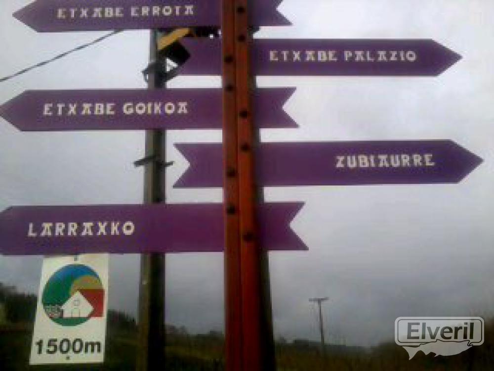 Description: cerca del rio Urola estan señalizados las direcciones hacia los caserios(zona de Aizarnazabal)